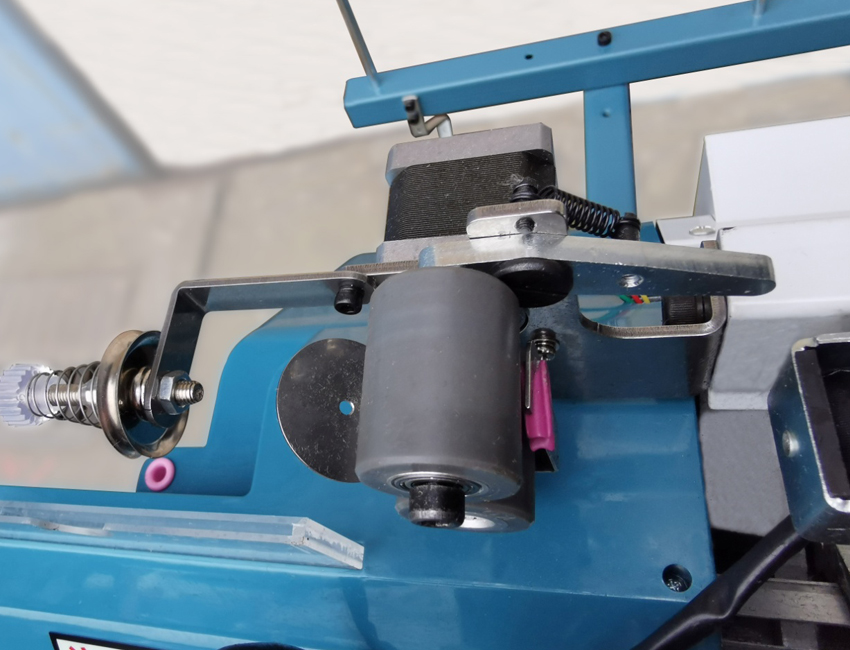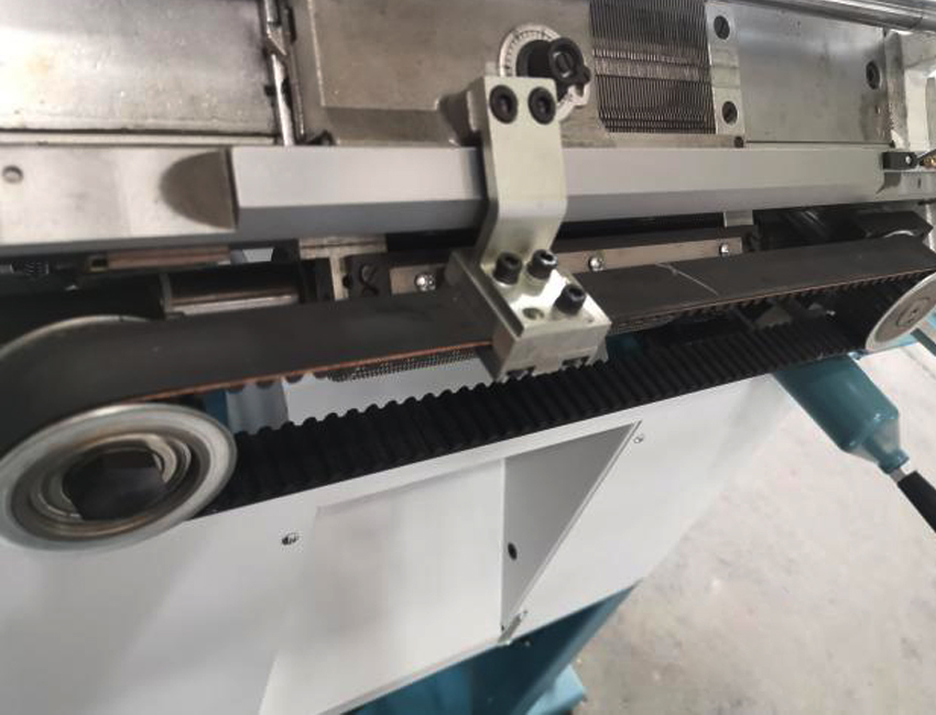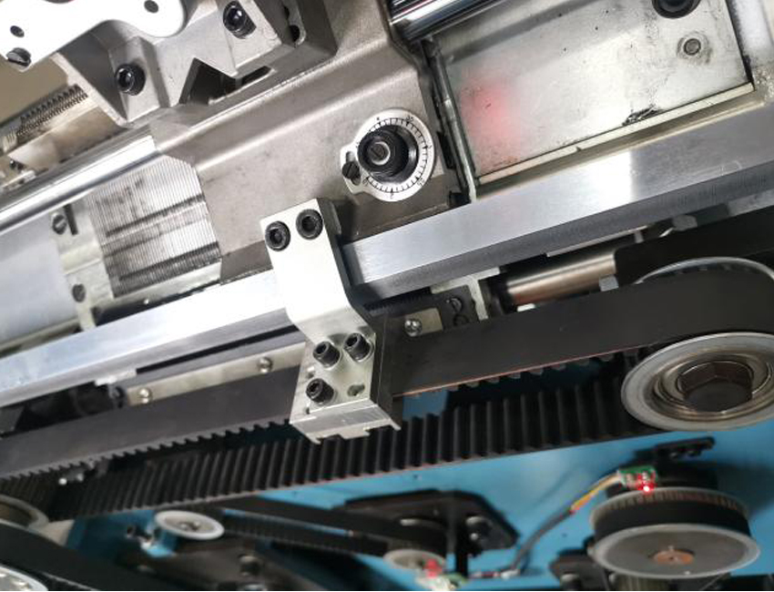 前后機頭由兩根同步帶單獨控制,并且前后同步帶輪與伺服電機同軸轉(zhuǎn)動,受力更均勻,使快速移動的機頭平穩(wěn)運行。